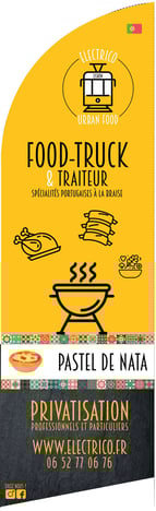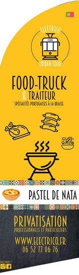 Avec l'Electrico Urban Food, nous avons créé ce winflag pour l'accompagner sur ses marchés, lors de ses événements traiteur, pendant des festivals et à l'entrée de son restaurant.